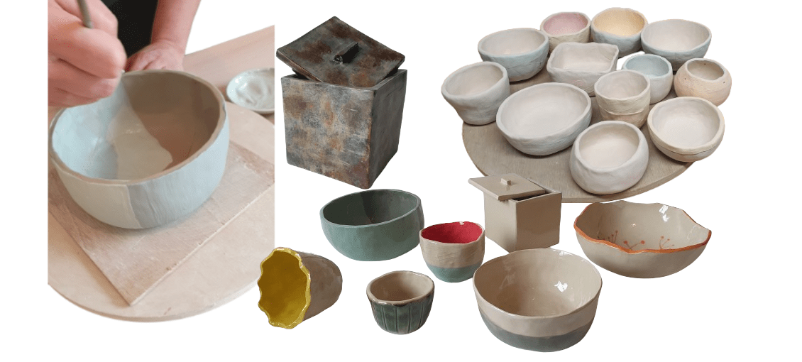 Atelier 2h30, fabrication d'une ou deux petites pièces. 40 € tout compris. 2-3 pers.